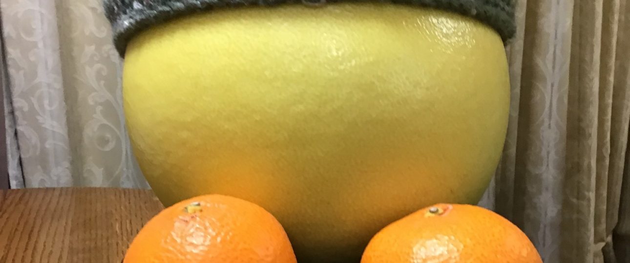 今年も晩白柚をいただきました。しかも、ニット帽もいっしょに。南の国から来たので、寒くないよ …